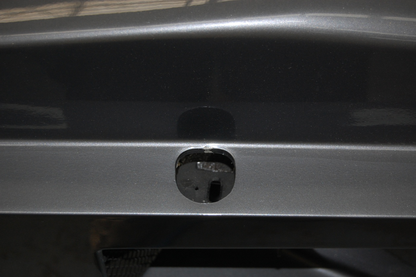 Tail latch pin hole before the polished stainless trim cover is attached.